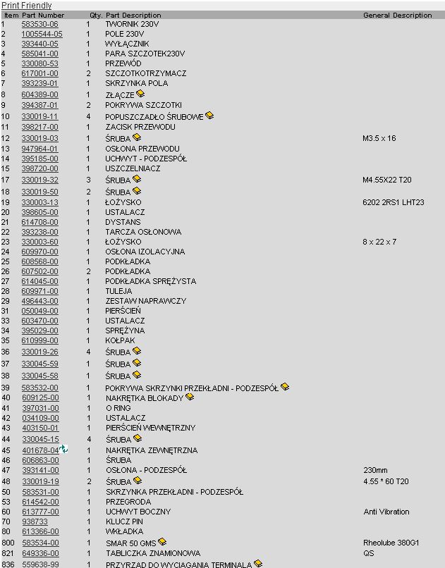 1) Znajdź na schemacie numer szukanej części zamiennej (opis każdego numerku znajduje się w tabeli poniżej).