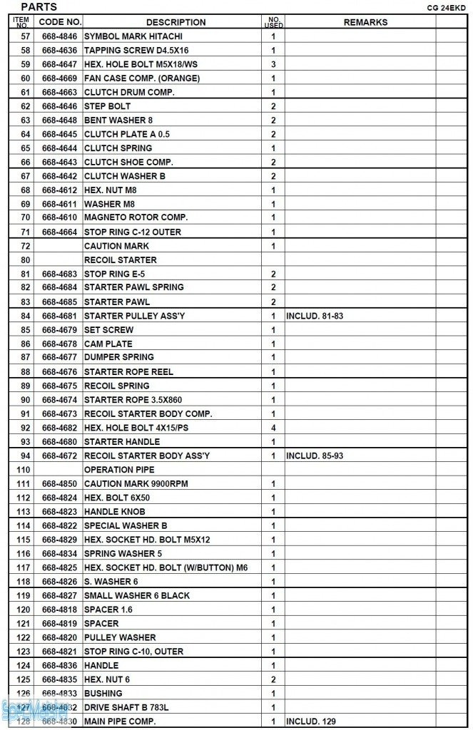 HITACHI Części zamienne do CG24EKD.
