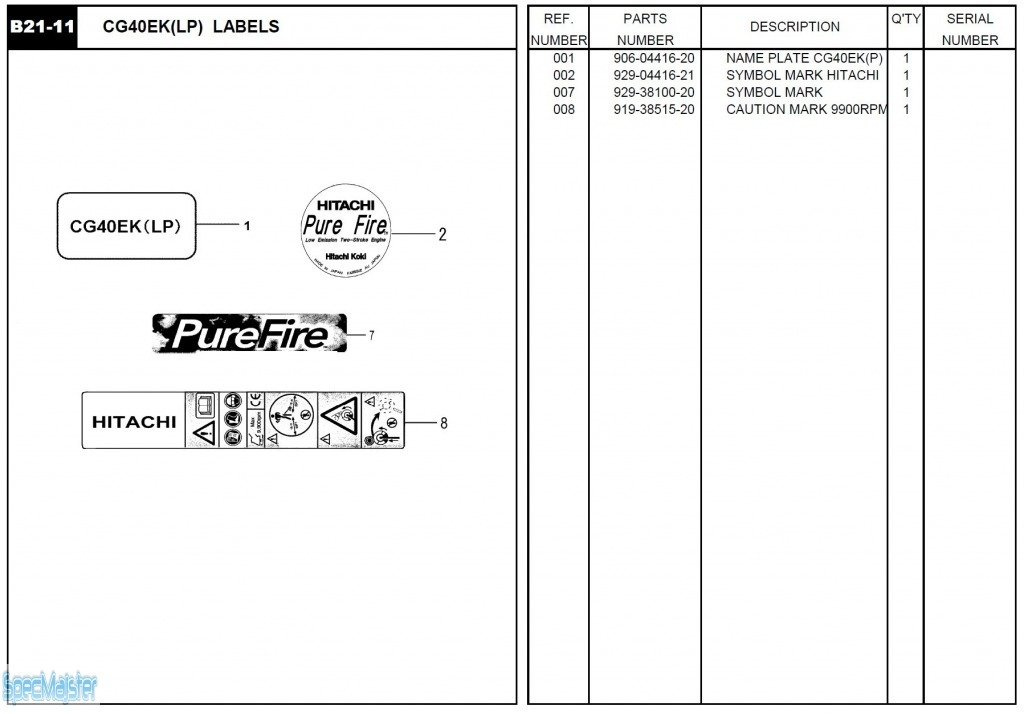 HITACHI Części zamienne do CG40EK(LP).