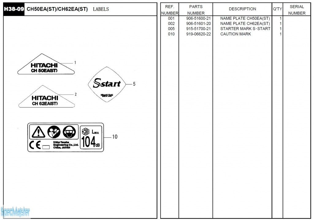 HITACHI Części zamienne do CH62EA(ST).