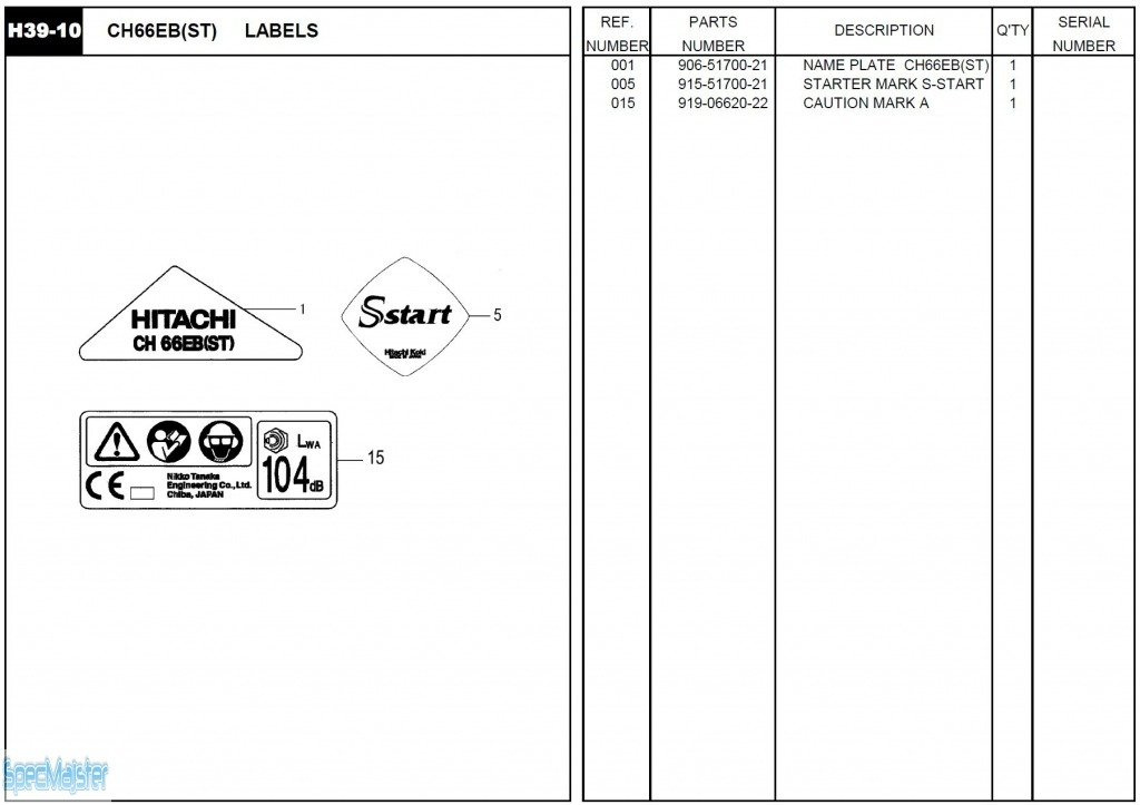 HITACHI Części zamienne do CH66EB(ST).