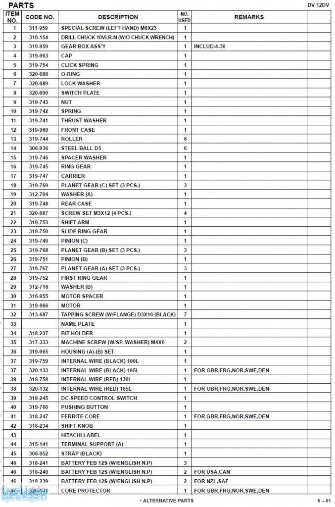 HITACHI Części zamienne do DV12DV.
