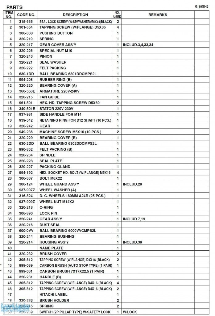 HITACHI Części zamienne do G18SH2.