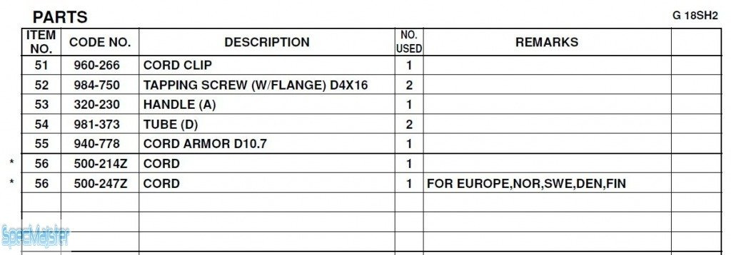 - HITACHI Części zamienne do G18SH2.