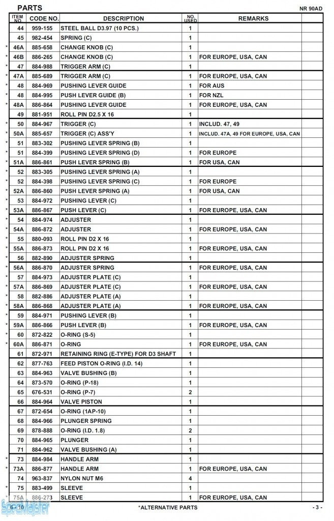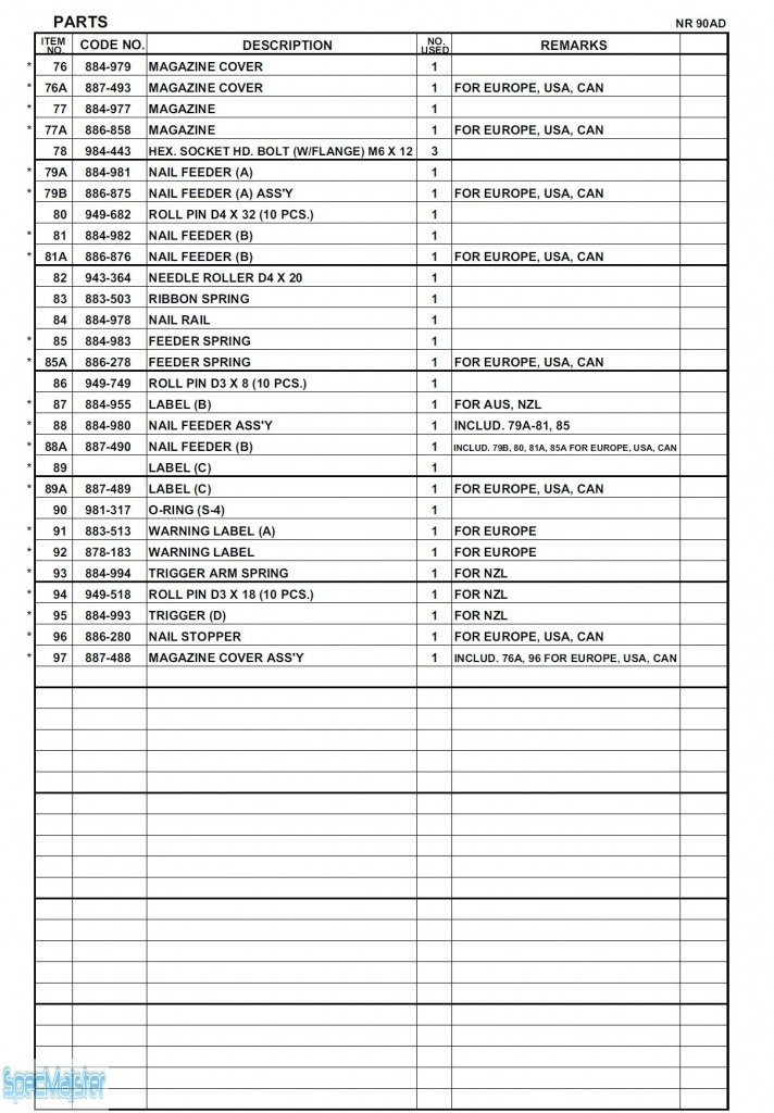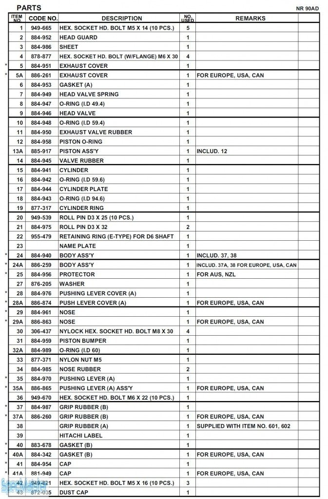 HITACHI Części zamienne do NR90AD.