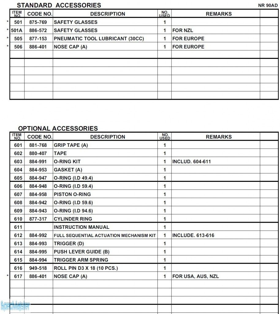 - HITACHI Części zamienne do NR90AD.