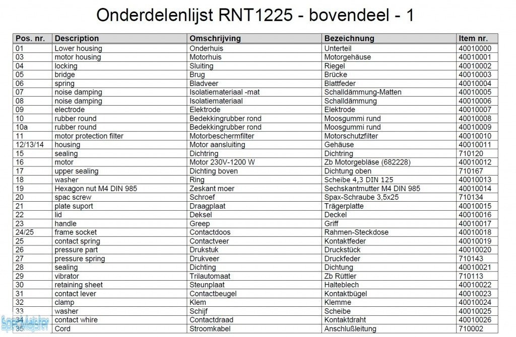 HITACHI Części zamienne do RNT1225.